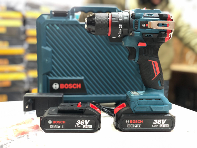 دریل شارژی ۳۶ ولت بوش براشلس سه نظام فلزی 36v.3ah