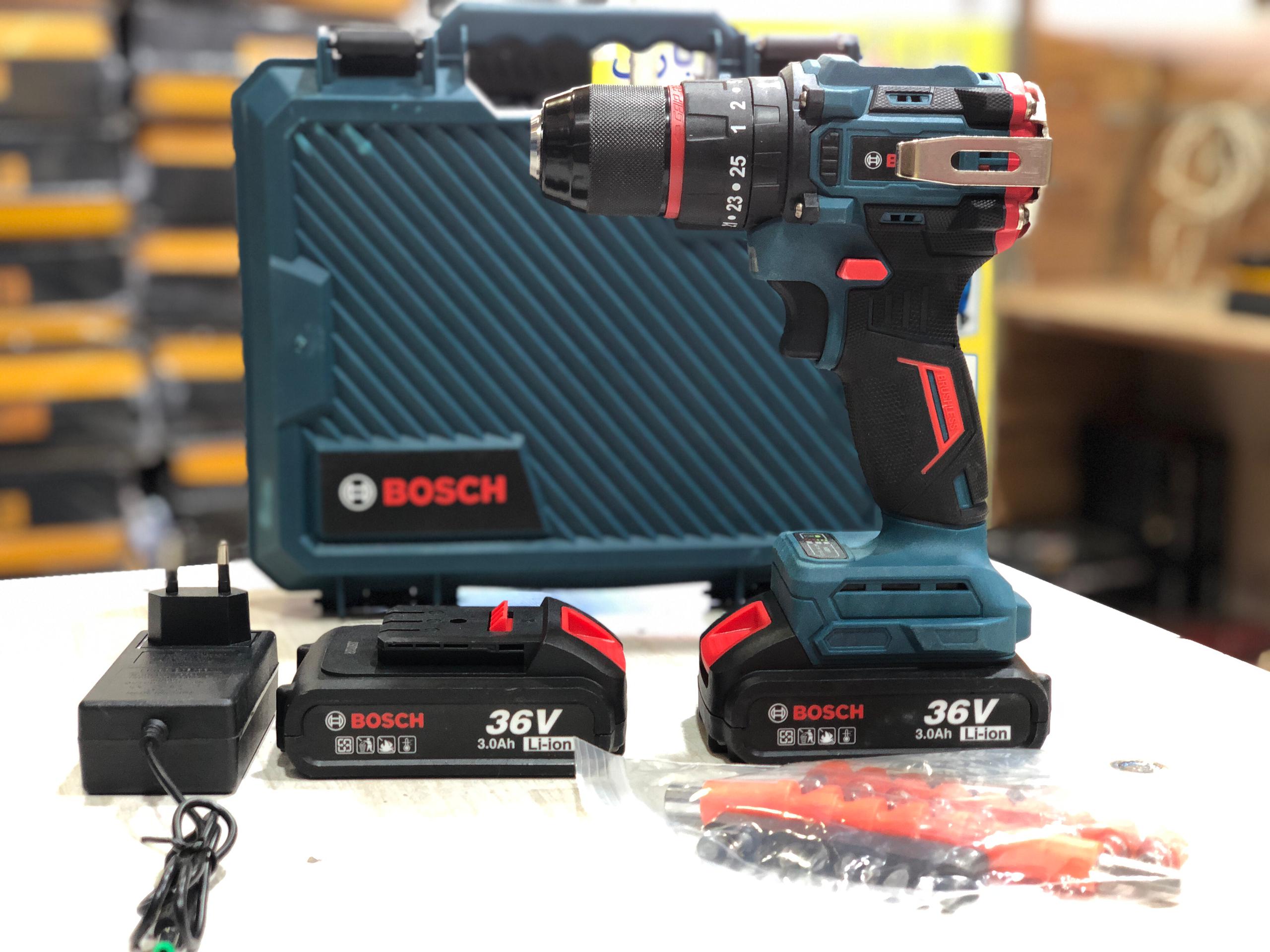 دریل شارژی ۳۶ ولت بوش براشلس سه نظام فلزی 36v.3ah